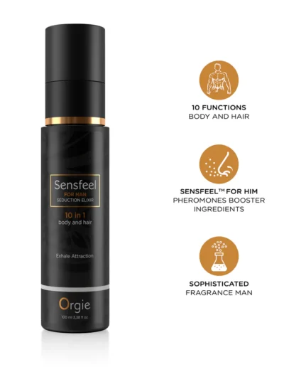 Loción corporal y capilar con feromonas formulada con el ingrediente de base natural Sensfeel For Him™ y seductora fragancia masculina.