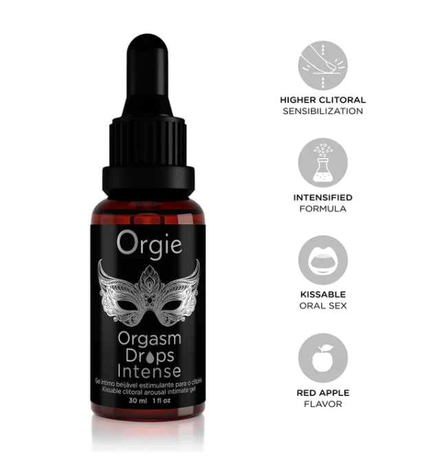 Orgasm Drops Intense es un gel íntimo besable para la excitación del clítoris, formulado para proporcionar mayores efectos de calentamiento y sensibilización del clítoris que favorecen una excitación extrema del clítoris y orgasmos abrumadores.
